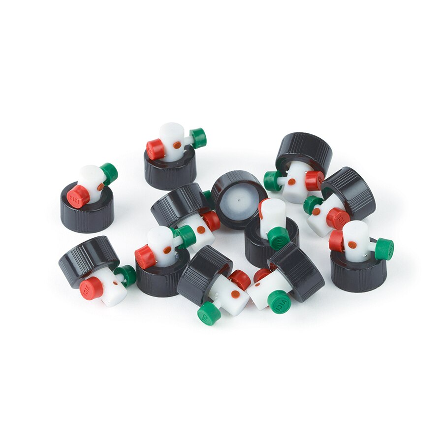 Mininert阀非常适合重复取样,并且限制内容物与硅胶隔垫的接触。提供适用于螺口瓶和钳口瓶的型号。用于13 mm ID玻璃小瓶的钳口阀可以滑入瓶颈。旋转螺纹法兰以确保紧密贴合。