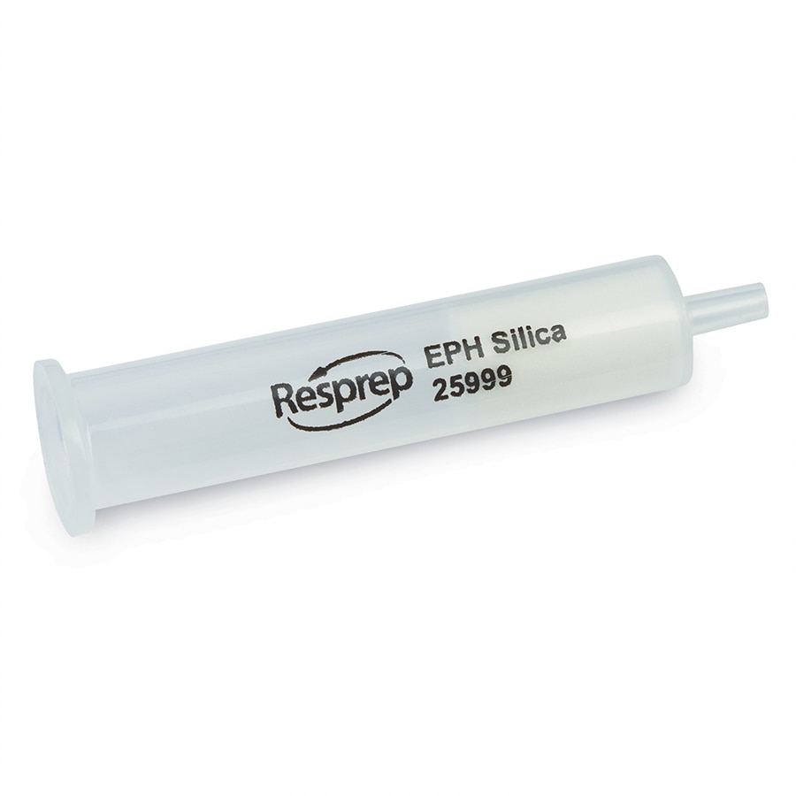 Restek EPH cartridges have a sample concentration loading capacity of 5000 ppm per gram silica for 5 g cartridges (total 25000 ppm) and 4250 ppm per gram of silica for 2 g cartridges (total of 8500 ppm), per instructions. However, to ensure satisfactory fractionation and avoid breakthrough, actual elution volumes should be determined empirically prior to sample analysis. The procedure in Restek’s product instruction sheet is suitable for MA and NJ method QC levels; however, high-concentration samples may require dilution or modified solvent volumes.