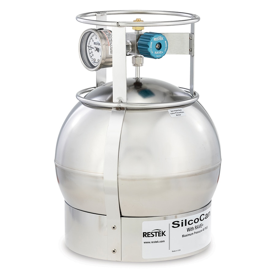 For ultimate inertness, SilcoCan air sampling canisters feature our unique Siltek treatment technology. Even highly active components at low parts-per-billion concentrations can be readily sampled and stored without loss. The valve is a high-quality, metal-to-metal seal, 2/3-turn valve with metal diaphragms to prevent sample adsorption for more accurate results. Both stainless-steel and Siltek-treated valves are available in both the 2-port and 3-port configurations. Each canister is slightly pressurized with contaminant-free nitrogen prior to shipment.