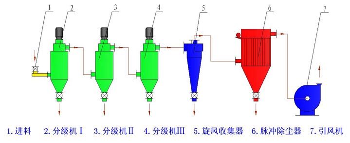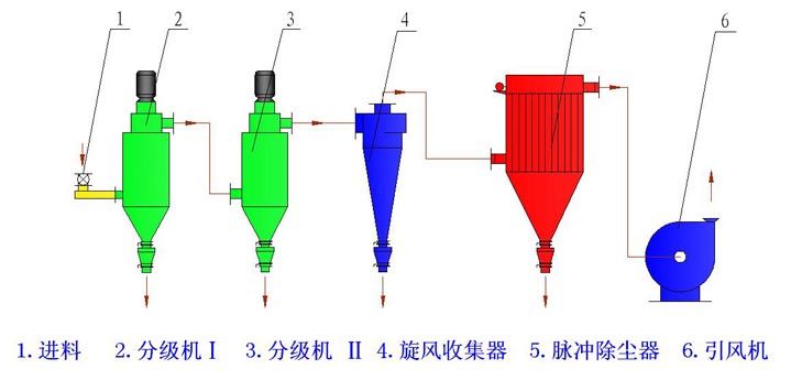 2、同时生产几个粒度级的产品,一台分级机可代替几台单级分级机使用。