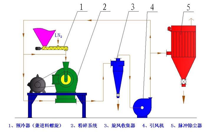 4、根据物料的特性,可选择负压或正压生产工艺流程,可选择常温粉碎和深冷粉碎两种形式。