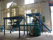 3、根据产品细度要求,可加配振动筛或气流分级机生产高细度产品,粗颗粒再次进入磨机循环粉碎。