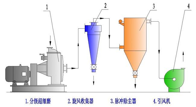3. 创新自分流循环装置,更适合于轻比重、粉状物料的超细粉碎。