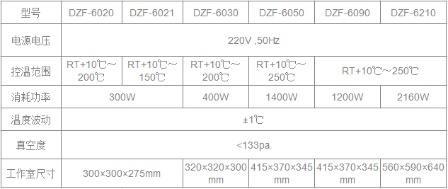 DZF型 真空干燥箱一、适用范围:适用于工矿企业、医学院校、科研单位在真空条件下对物品进行干燥热处理等。二、产品特点:1、长方体工作室采用优质钢板或不锈钢板。钢化、防弹双层玻璃门观察工作室内物体一目了然。2、箱门闭合松紧能调节,整体成型的硅橡胶门封圈,确保箱内高真空度。3、微电脑智能控温仪,具有设定,测定温度双数字显示和PID自整定功能,控温精确,可靠。4、加热功率比例可任意调节,确保低端控温无温度之弊。