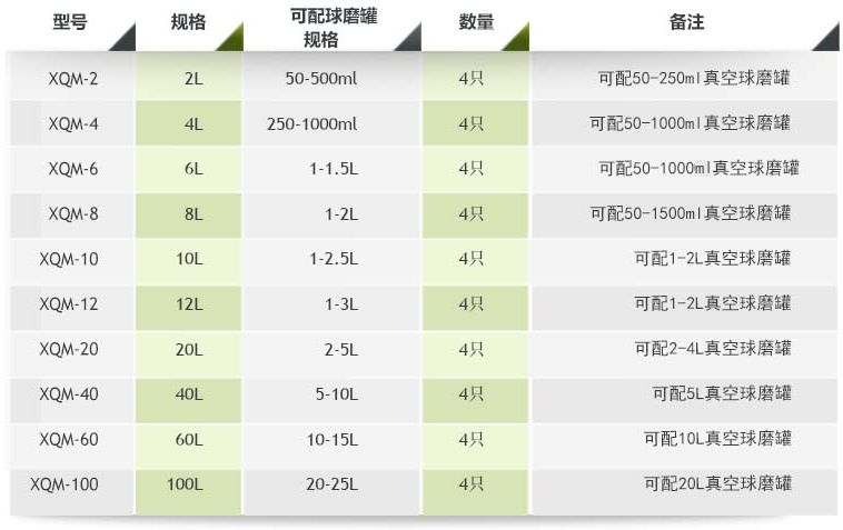 表一:立式方形行星式球磨机配罐参考