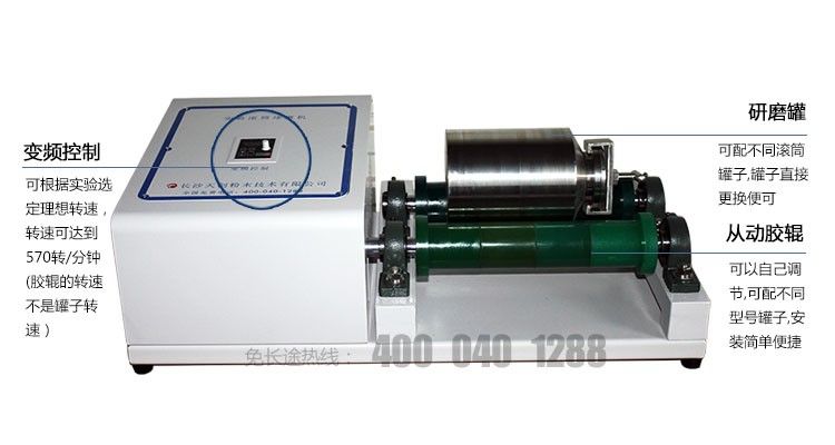 3.通过调整从动胶辊可以使用一定范围内的不同外径的球磨罐;