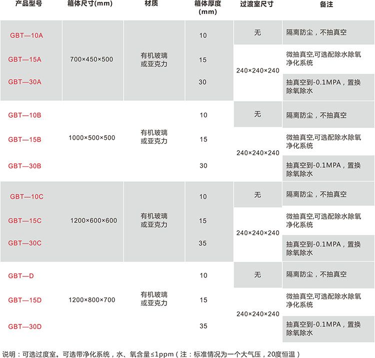 三、有机玻璃手套箱技术参数