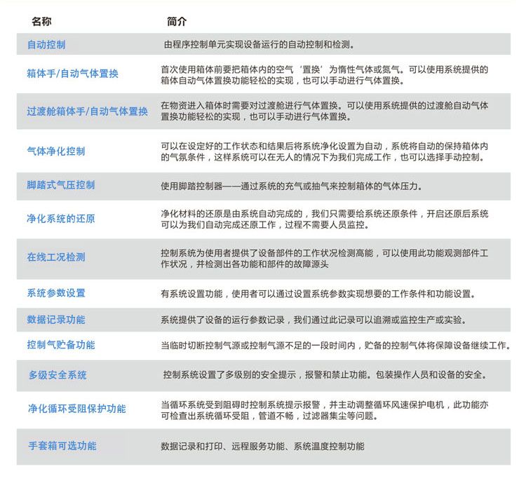 手套箱专为研究材料科学、化学、半导体及相关行业所设计,采用德国BASF除氧材料,美国UOP高效吸水材料,手套箱内水、氧成份可长期持续保持气体纯度在1ppm以下。