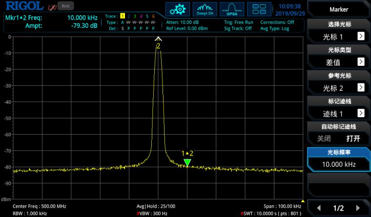 分辨频率相近的信号对于验证许多RF器件和系统至关重要。使用RSA3000E仅为1 Hz的RBW分辨率带宽,可以查看相邻信号的更多细节。