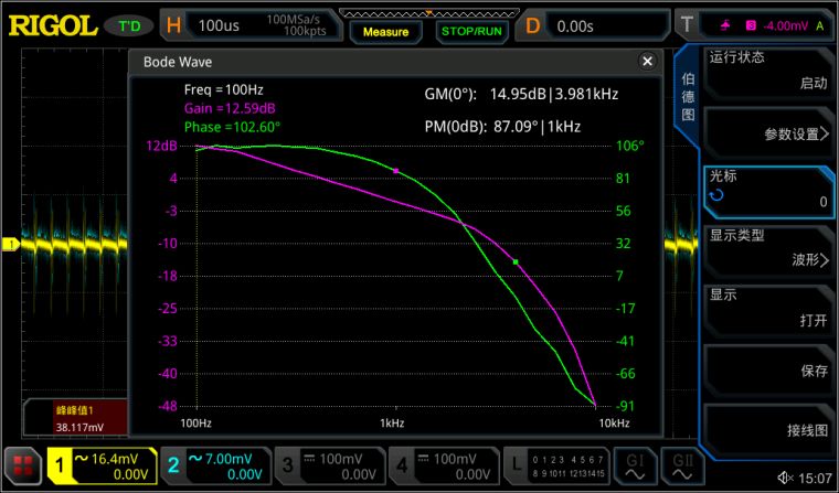 ![]() | 开关电源环路分析功能——伯德图(需要选配MSO5000-AWG MSO5000伯德图功能,可以直观地提供测试曲线及数据,帮助工程师通过分析相位裕度和增益裕度等参数,快捷判断系统稳定性。 |
