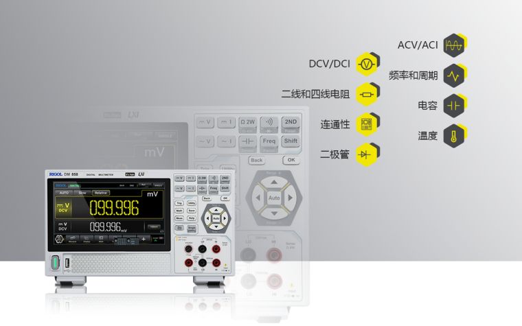 ![]() | 11种输入信号测量 支持测量DCV, DCI, ACV, ACI, 二线和四线电阻, 频率和周期, 连通性, 二极管, 温度, 电容输出信号,为测试提供更多可能 |
