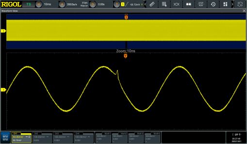 ![]() | 1M wfms/s的波形刷新率让偶发信号无所遁形 基于RIGOL新一代UltraVision III平台,达到每秒1百万次的波形刷新率,更容易捕获偶发的信号瑕疵。 |