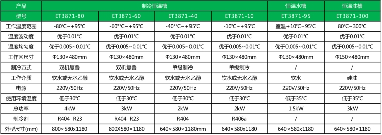 标准恒温槽供计量部门作一、二等标准水银温度计,贝克曼温度计。工业铂热电阻,标准铜-康铜热电偶检定之用,也可作高精度热、冷源供生产、科研使用。