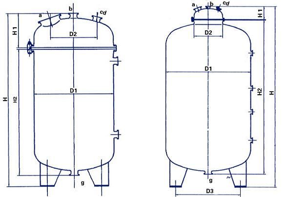 该设备分立式和卧式两种,立式又分开式和闭式,规格:立式K200—K3000L—F50000L,卧式3000L—50000L,配有液位计、放料阀。搪玻璃层厚度0.8-2.0mm并经20KV高电压检测,工作温度:-20℃—200℃,工作压力≤2.5kgs,支撑方式有托耳(放在架子上)和支腿(放在地上)两种,如需加热或冷却,也可配置夹套。