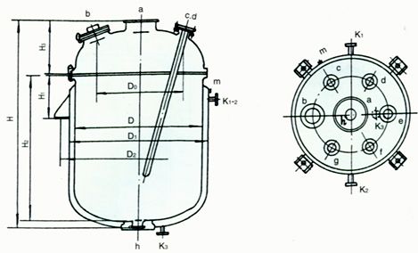 该设备分开式和闭式两种,规格:200L—5000L,配有温套管、放料阀。开式由罐体和罐盖组成(由卡子和垫片连接),闭式为一体式结构。搪玻璃层厚度0.8-2.0mm并经20KV高电压检测,工作温度:-20℃—200℃,工作压力≤2.5kgs,支撑方式有托耳(放在架子上)和支腿(放在地上)两种, 通过夹套给罐内物料加热的方式有蒸气加热、油加热、电加热等。
