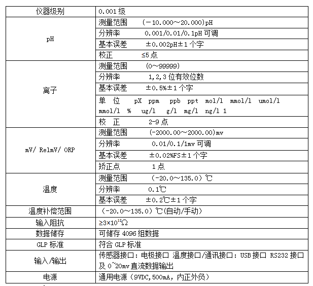 0.001ph /0.1mV高分辨率设计,可以满足国标测量离子浓度的要求