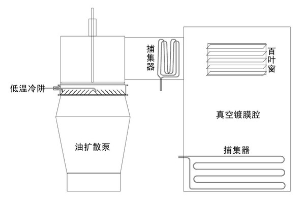 放在油扩散泵的泵口,高阀以下,它的主要功能是防止油扩散泵返油,同时也可以加快抽速、提高真空度。由于系统处于真空状态,无需除霜装置。