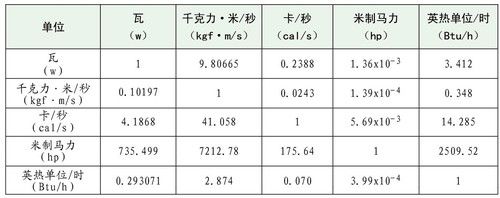 功率单位换算表