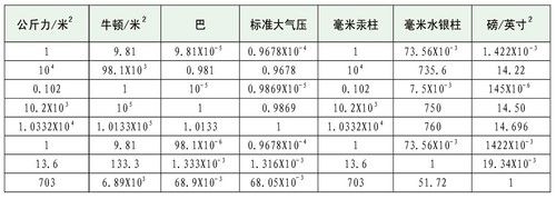 压力换算表