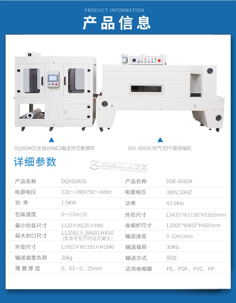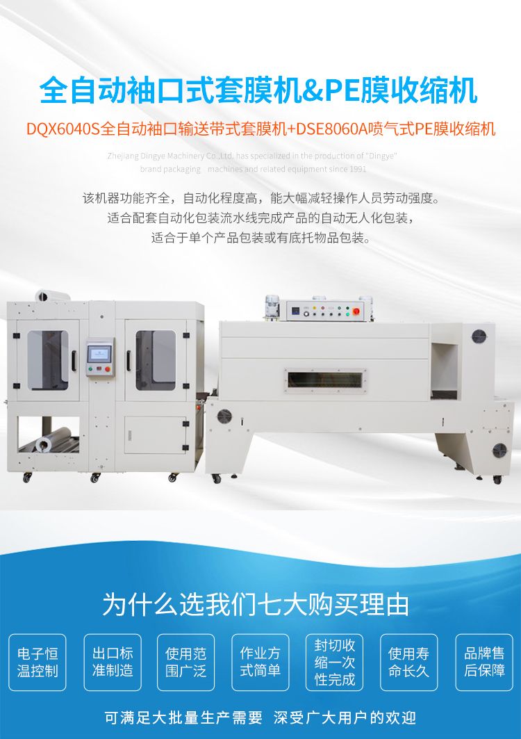 DQX6040S全自动袖口式输送带式套膜机+DSE-8060A喷气式pe膜热收缩包装机