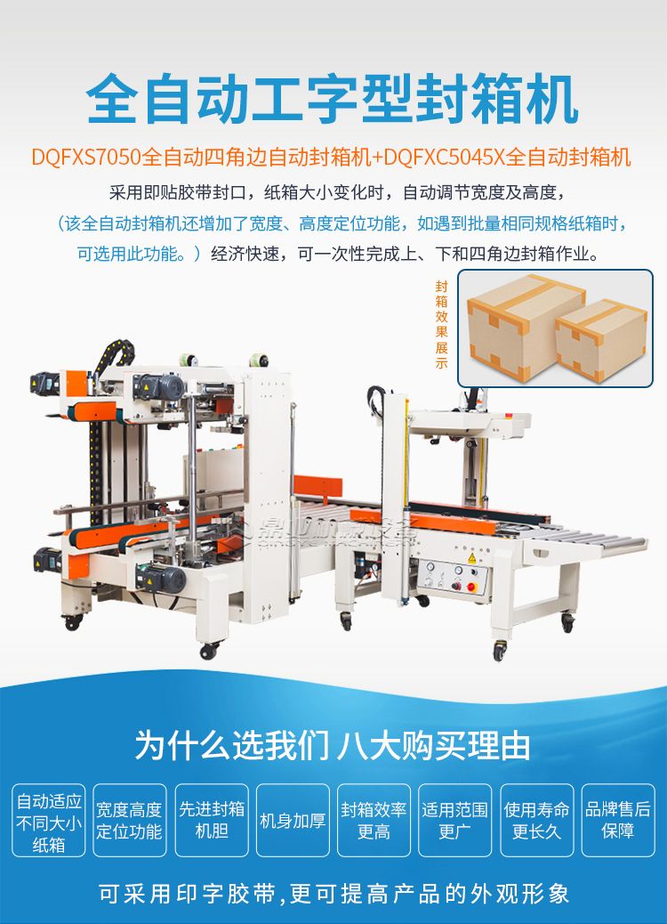 DQFXS7050全自动四角边自动封箱机+DQFXC5045X全自动封箱机