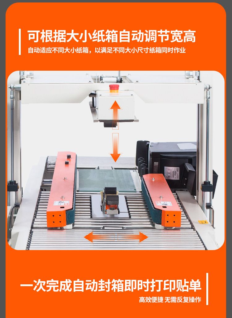 型号 DQFXC4030CA电源电压 AC220V/50Hz功率 500W输送速度 18m/min封箱胶带宽度 36mm 45mm传动方式两侧输送带传动最大封箱尺寸(宽×高) 300×400mm最小封箱尺寸(宽×高) 80×90mm外形尺寸(长×宽×高) 2400×1075×1200mm