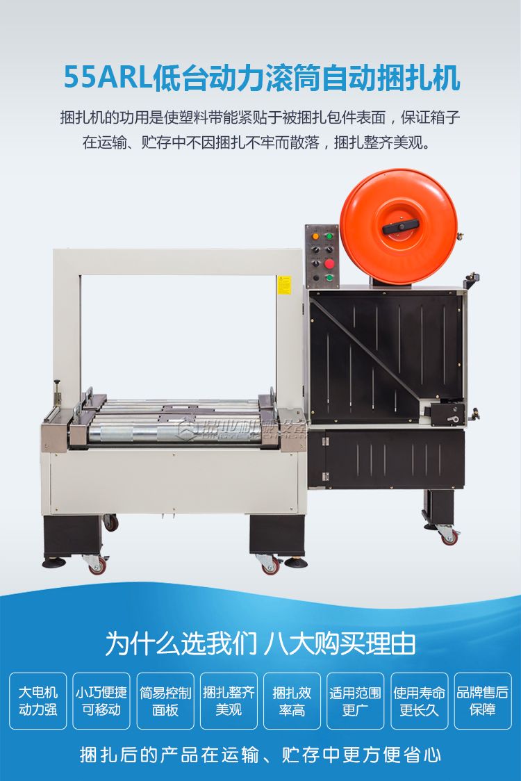 低台全自动打包机是采用意大利,德国,日本等先进技术,性能稳定,适合连续繁重的打包工作。关键件由精密加工中心加工而成,使机械运行更柔顺,寿命更长久。以聚丙烯塑料袋为捆扎材料的低台型动力全自动打包机(捆扎机)。适合于各种行业、各种场合的包件捆扎。本机配备全面动力滚筒,与流水线接驳,实现无人化双道或多道打包。