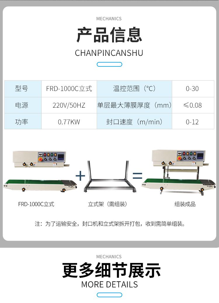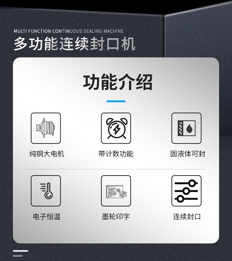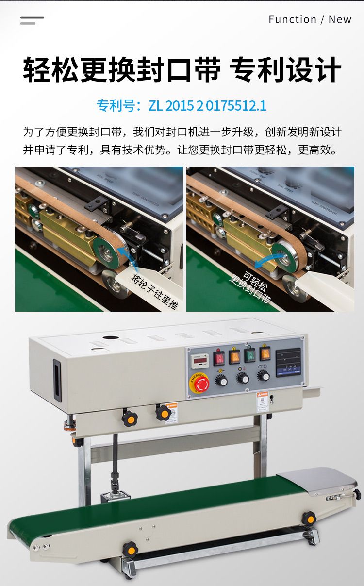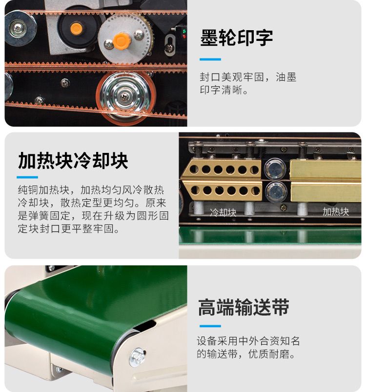 立式更适合带液体包装袋封口,防止封口时漏液。采用墨轮印字有色印字,能在封口上印出日期、保质期等标志。带计数功能,方便计数,更加省力。