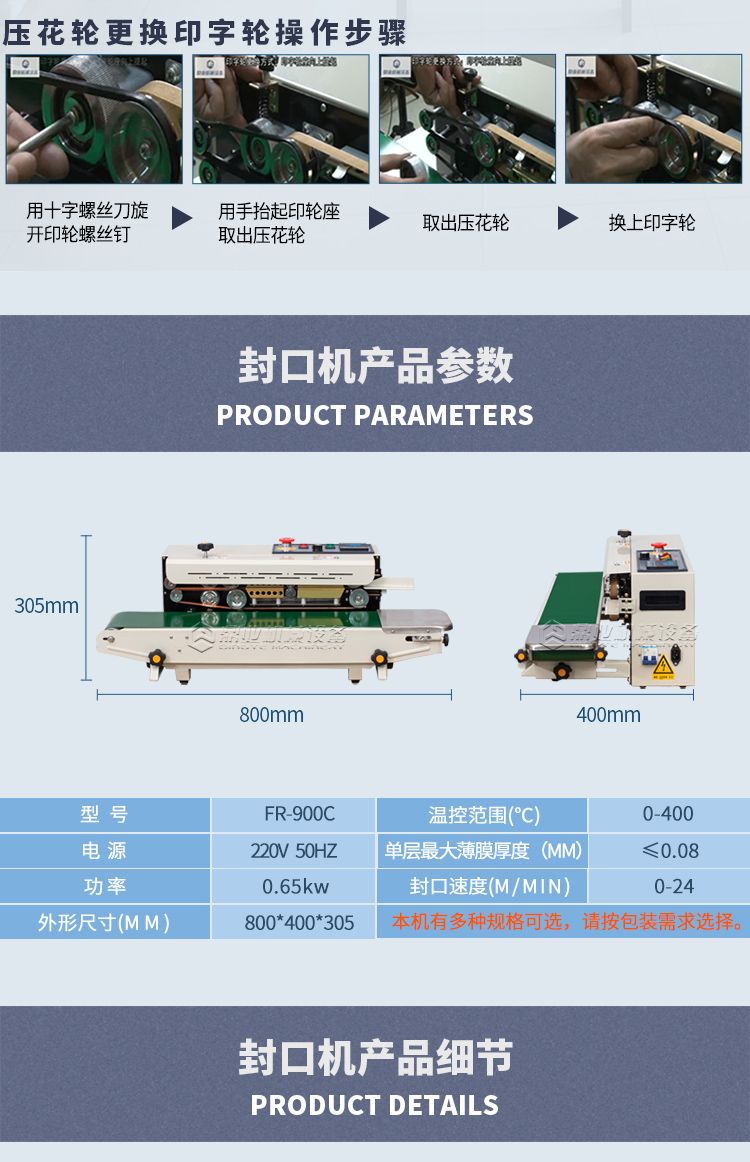 FR-900C自动薄膜封口机采用电子恒温控制和无极调速的传动机构,可封制各种不同材料的塑料包装袋,由于本机器体积小,应用广泛,封口长度不受限制,所以可与各种包装流水线配套使用。它将是工厂,商店批量产品包装的封口设备。
