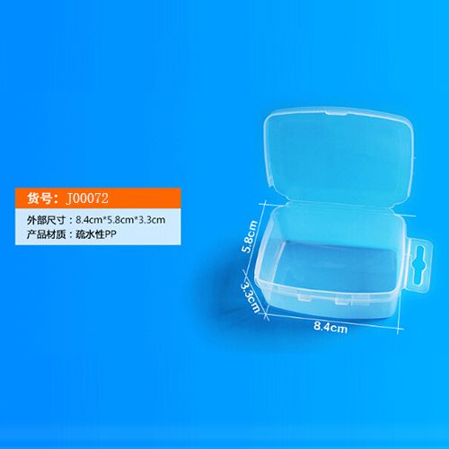 | J00072 | 单格 | 透明 | 连盖 | 长8.4cm宽5.8cm高3.3cm | 2个/包,20个/盒 |