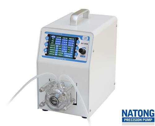 纳通蠕动泵采用脉冲调速,用角度来控制灌装量,保证每次灌装停机后滚轮位置不变,避免了因滚轮每次停的位置不同而产生的误差。使得重复精度有很大的提升。可以控制在0.3%以内。(仅适用于10滚轮或8滚轮泵头)