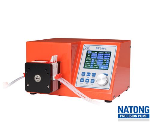 纳通蠕动泵采用脉冲调速,用角度来控制灌装量,保证每次灌装停机后滚轮位置不变,避免了因滚轮每次停的位置不同而产生的误差。使得重复精度有很大的提升。可以控制在0.3%以内。(仅适用于10滚轮或8滚轮泵头)