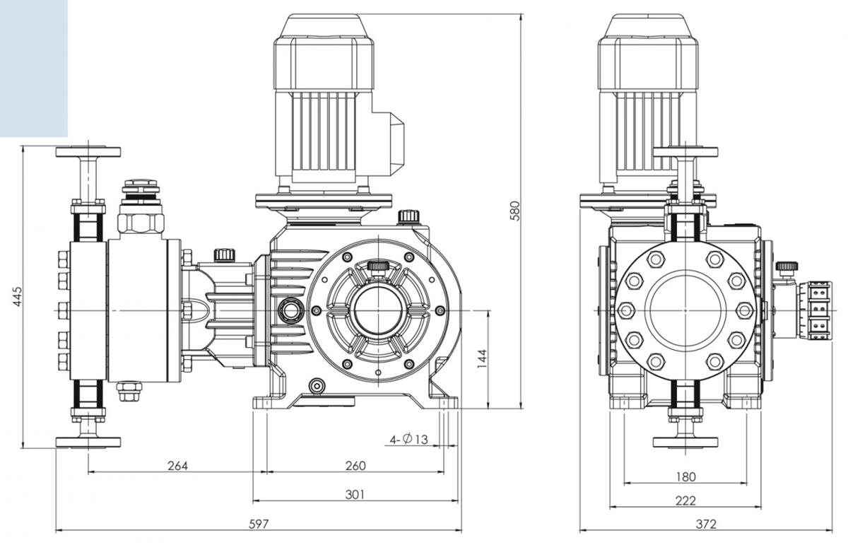 | 型号 | 流量 L/H | 压力 Mpa | 柱塞直径 mm | 行程 mm | 泵速 min-1 | 电机功率 kw | 进出口径 | 联接方式 |
