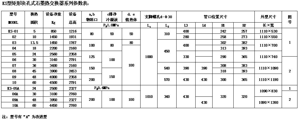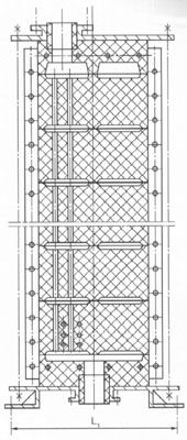 KS型矩形块孔式石墨换热器按单台换热面积小于、大于24m2分成两种结构。