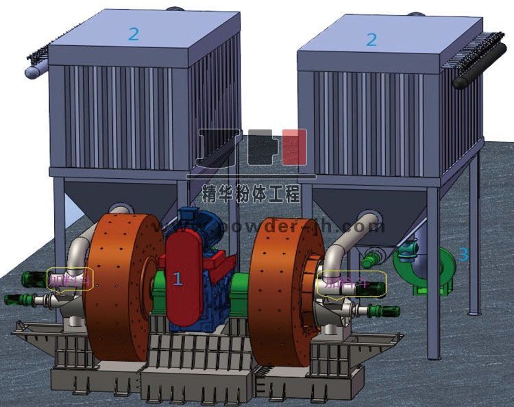 1.JHM双挂精华磨 2.脉冲除尘器 3.引风机