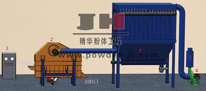 1.控制柜 2.GX干洗机 3.脉冲除尘器 4.引风机 5.消音器