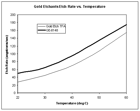 金薄膜蚀刻剂在光刻法制作微电子线路中用以选择蚀刻金。和光刻技术相结合这些蚀刻剂可在氧化铝或其他基板上的薄膜上制作精密电极和电阻图案。