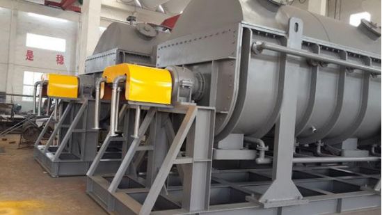 我公司专业设计制作污泥干燥机,针对行业:印染、造纸、生物、电镀、热电、化工及污水处理厂。一般污泥脱水后初水分在80%,烘干后终水分为10%-50%,一般污泥要求在30%左右,干污泥成松散粉粒状可与煤粉混合后直接进入锅炉燃烧,污泥的热值大概在1500-2000kcal左右,可废物利用并节省能源,有的污泥烘干后也可制成肥料和建筑材料,或直接填埋不会造成二次污染,变废为宝,完全可达到环保要求,此设备能耗低、热源可使用蒸汽、导热油、烟道气加热(蒸发1kg水消耗热量为1.1-1.3kg蒸汽)具有动力消耗低、运转平稳、低噪音、用工量小等优点,基本为全自动生产。
