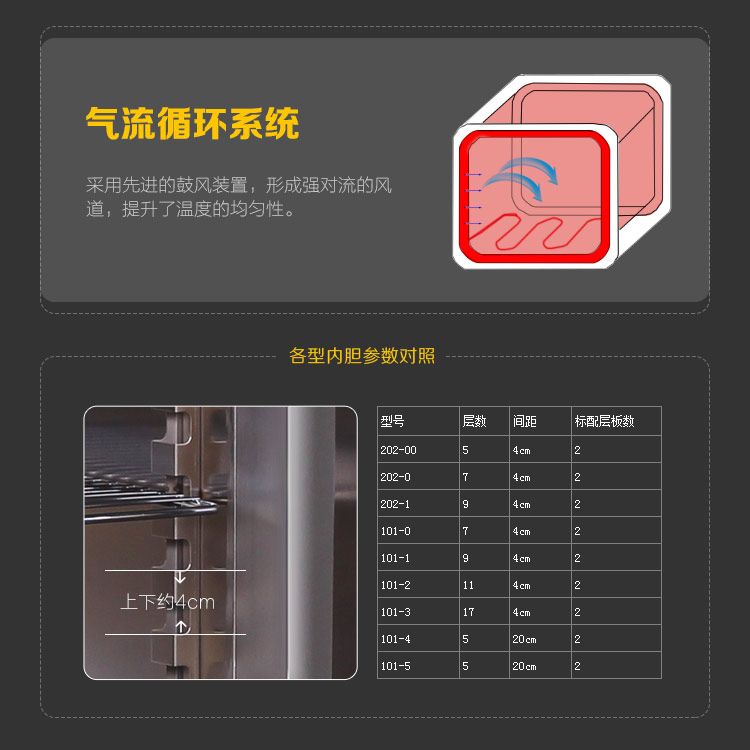 5、工作室内搁板高度、搁板数量均可调节,方便存取不同规格样品;