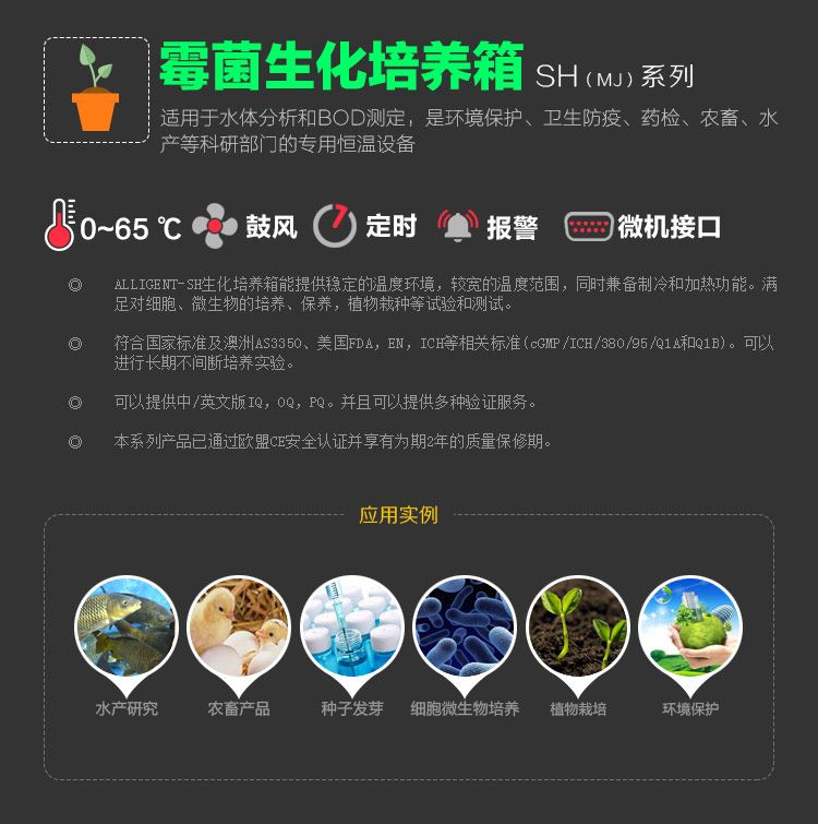能提供稳定的温度环境,较宽的温度范围,同时兼备制冷和加热功能。满足对细胞、微生物的培养、保存,植物栽种等试验和测试;
