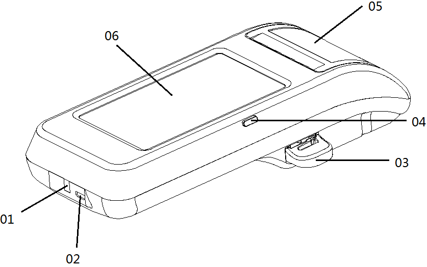 04、电源键 05、热敏打印机 06、触摸屏