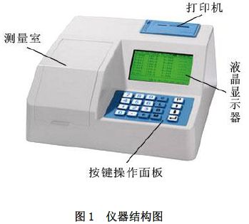 仪器由LED 光源、比色池、光电传感器、微处理器和微型打印机构成,可直接在液晶屏幕上显示