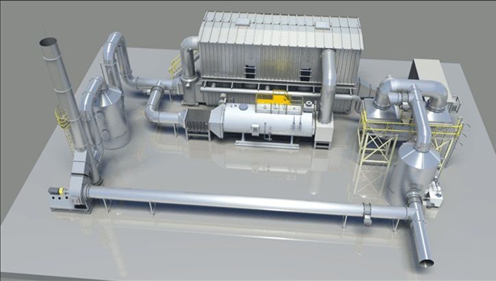 其原理是把有机废气加热到760摄氏度以上,使废气中的VOC在氧化分解成二氧化碳和水。氧化产生的高温气体流经特制的陶瓷蓄热体,使陶瓷体升温而“蓄热”,此“蓄热”用于预热后续进入的有机废气。从而节省废气升温的燃料消耗。陶瓷蓄热体应分成两个(含两个)以上的区或室,每个蓄热室依次经历蓄热-放热-清扫等程序,周而复始,连续工作。蓄热室“放热”后应立即引入适量洁净空气对该蓄热室进行清扫(以保证VOC去除率在95%以上),只有待清扫完成后才能进入“蓄热”程序。