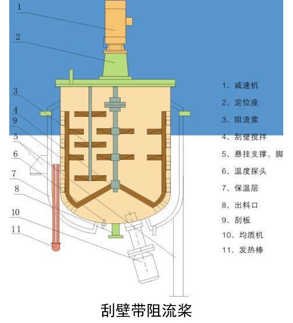 4、刮壁式搅拌,随时迎合搅拌槽之形体,扫净锅壁粘料。