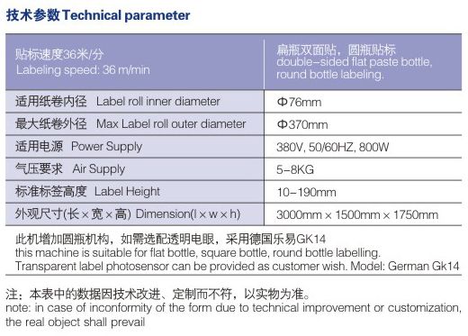 采用伺服电机,速度加快时贴标精度提高,机器性能更稳定。