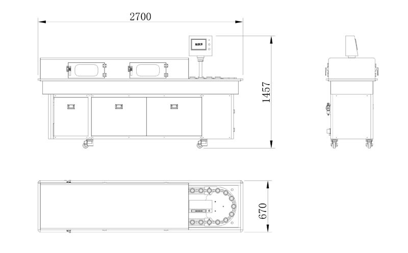 外型尺寸:2700×670×1180mm(长×宽×高)