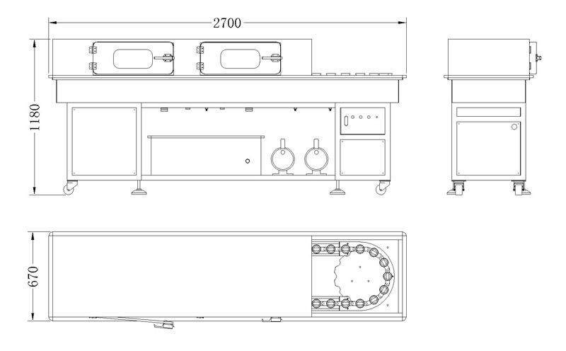 外型尺寸:2700×670×1180mm(长×宽×高)