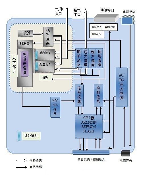 化学发光法NO-NO2-NOx分析仪 原理框图