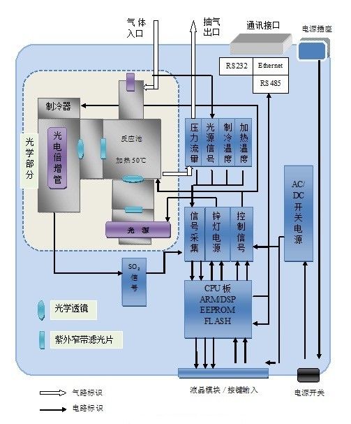 紫外荧光法二氧化硫分析仪 原理框图