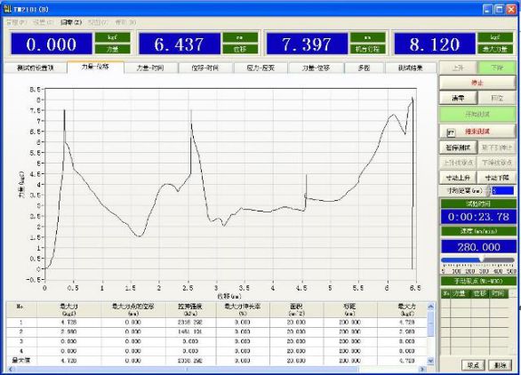 该软件可单独控制和方便显示测试资料、曲线、速度,材料规格等功能,并结合微打印机打印测试结果,并具有自动回位原点功能。该软件也为一款(上位机)连线功能:透过USB界面以及R232串口与个人计算机进行连线、可进行双向资料传输、直接以计算机软件进机台控制、数据分析、曲线图绘制等功能。